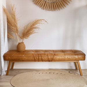 Custom Faux leather cushion cover, Bench cushion ,Tan & brown , boxed cushions, order to size